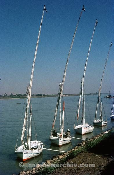 1966. Afrika. Egypt. Ägypten. Luxor. Segelboote auf dem Fluß / Fluss Nil. Am Ufer.