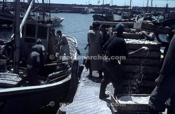 1968. Afrika. Maghreb. Königreich Marokko (Al-Mamlaka al-maghribiya; Royaume du Maroc, Kingdom of Morocco) Safi. An einem Fischerboot im Hafen.