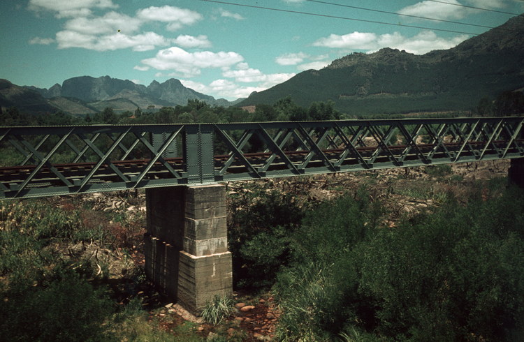 um 1970. Südafrika. Franschhoek. Bekannt für seine guten Weine. Eisenbahnbrücke