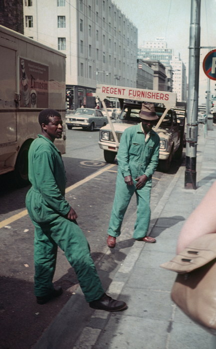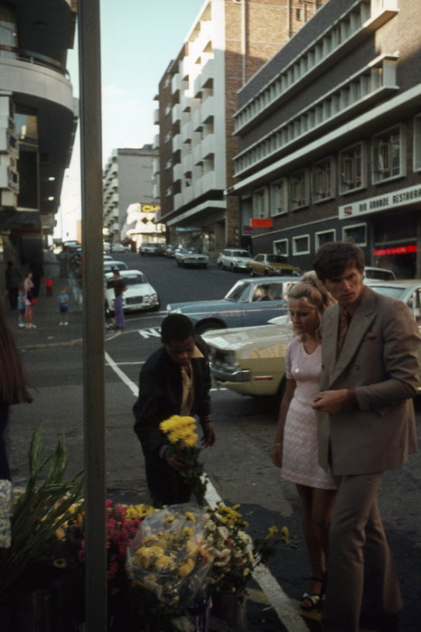 um 1970. Afrika. Südafrika. Johannesburg. Zeitungsverkäufer an der Straße