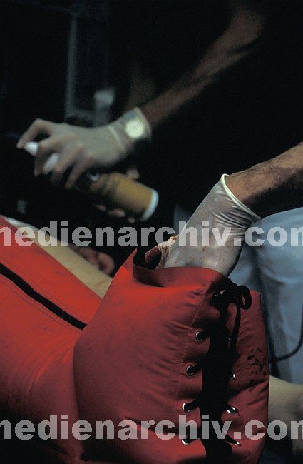 Die Bilder sind mehrere Jahrzehnte alt und Patienten sind nicht identifizierbar. Mit dieser Seite sollen keine Rechte verletzt werden. Die Fotos vermitteln einen Einblick in die harte Arbeit im Krankenhaus und bei Noteinsätzen sowie die unschöne und für Laien verstörende Realität bei der Behandlung schwerer körperlicher Verletzungen.