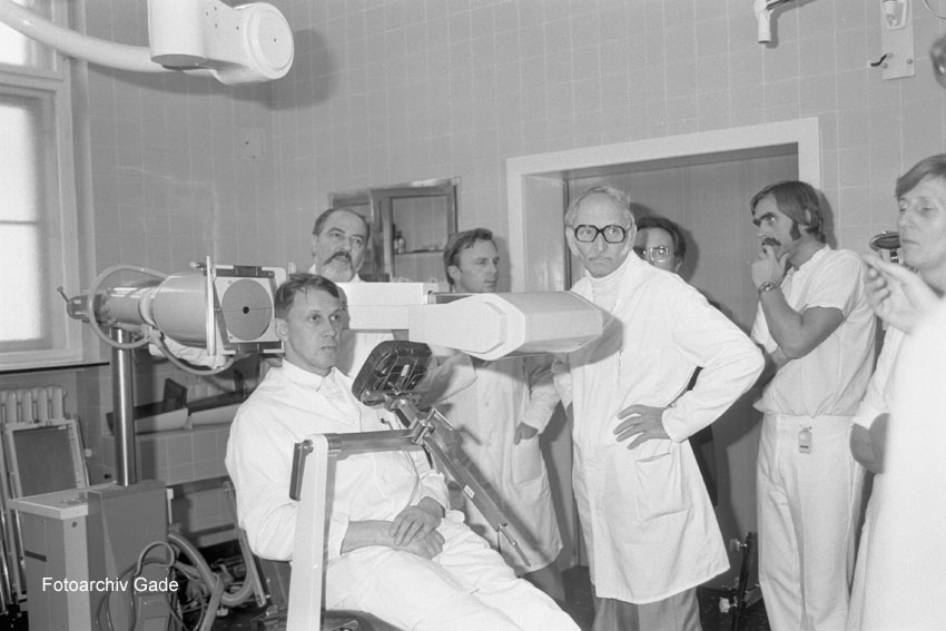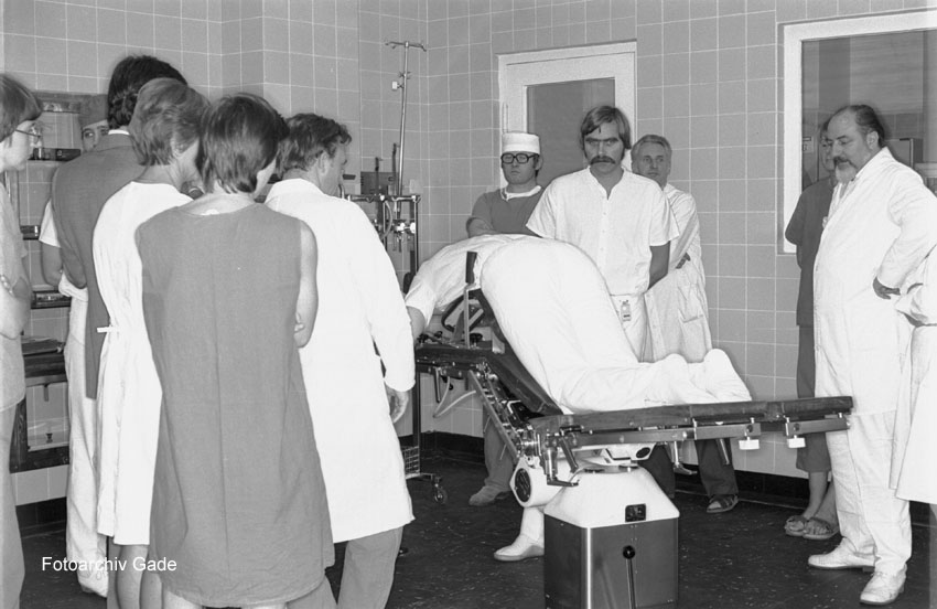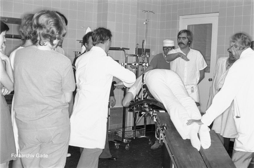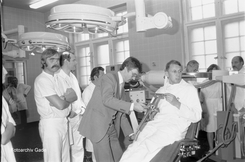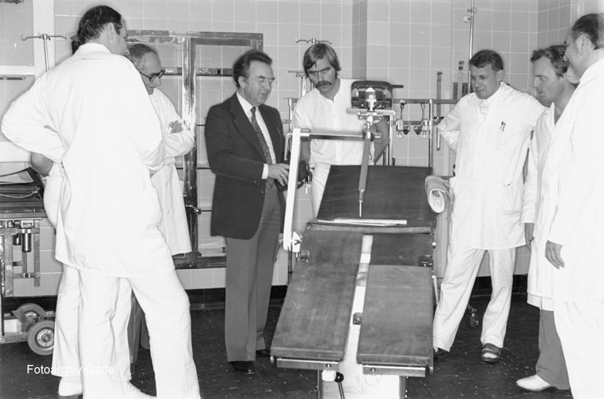 12. 11. 1979. Klinikum Berlin-Buch. Neurochirurgie. Vorführung eines neuen Operationstisches.