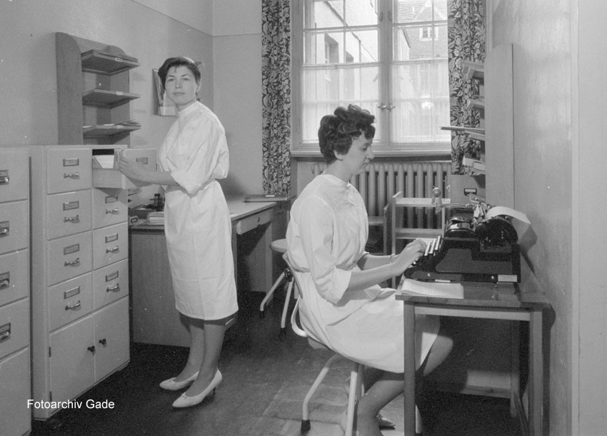 DDR. Berlin. Buch. Krankenhaus Buch. Klinikum Berlin-Buch. Krankenschwestern im Büro