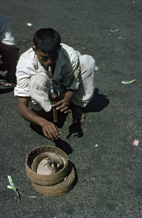 1966. Indien. Bombay. Schlangenbeschwörender.