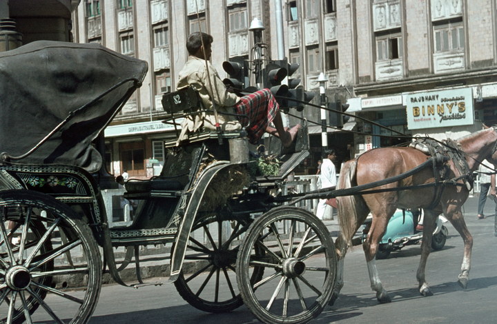 1966. Indien. Bombay. Droschke. Kutsche mit Pferden