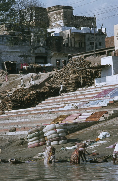 Varanasi (auch Benares oder Kashi. Bénarès) am Fluss Ganges ist die wichtigste der sieben heiligen Städte der Hindus. Die Stadt ist ein Wallfahrtsort. Am Ufer des Ganges gibt es viele Ghats; das sind breite Treppen. auf denen sich Gläubiger und Pilger drängen. um rituelle Bäder im Ganges vorzunehmen. Sie befreien von begangenen Sünden. Am Ufer finden Leichenverbrennungen statt.