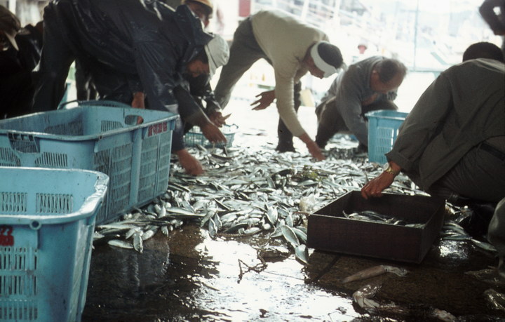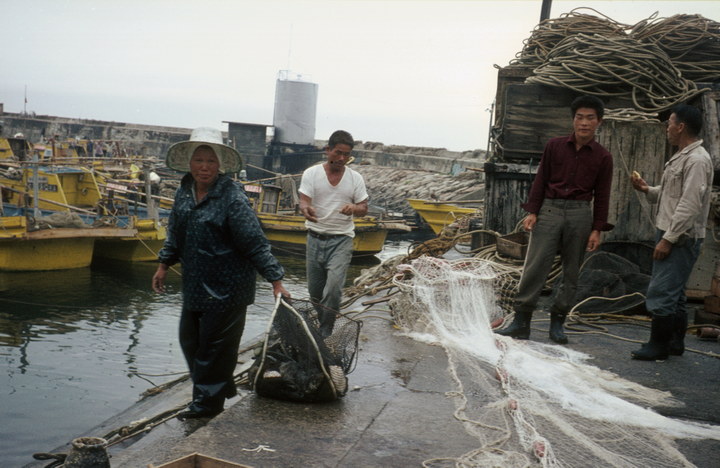 1970. Asien. Japan. Eine Gruppe versammelt sich zu einer Fotografie.