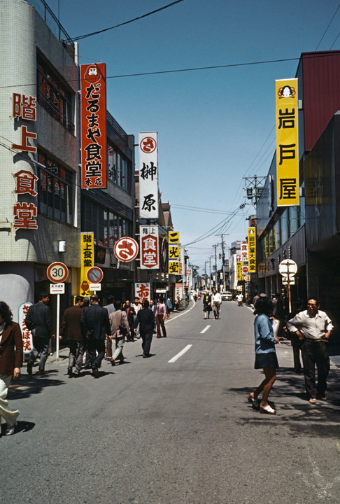 um 1970. Japan. Blick aus einem Flugzeugfenster