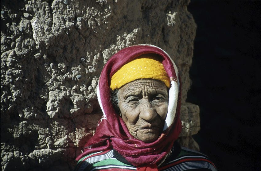 Alte Frau mit Kopfbedeckung