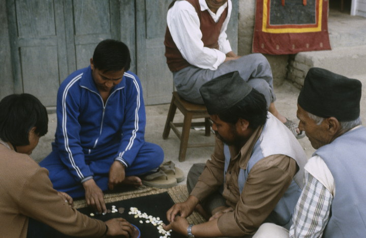 1982. Asien. Asia. Königreich Nepal. Nepal Adhirajya. Männer beim Brettspiel