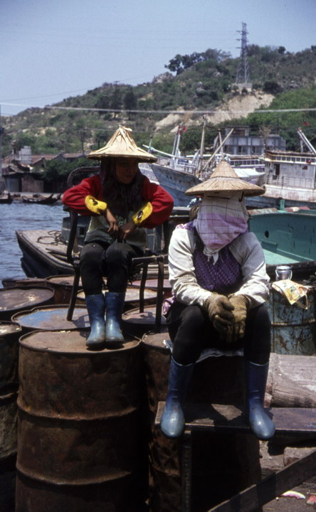 1974. Asien. Taiwan. Hafen. Arbeiter. Schiffe. Boote