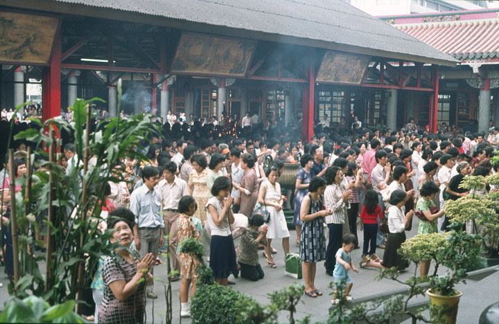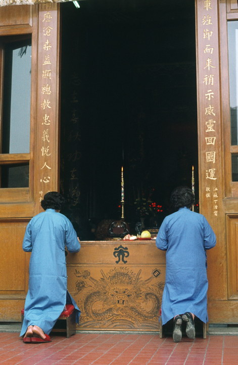 1974. Asien. Taiwan. Beten in einem Tempel