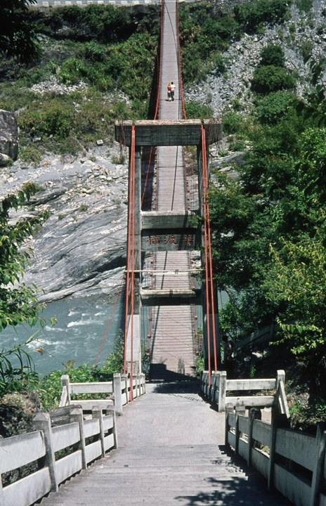 1974. Asien. Taiwan. Hängebrücke