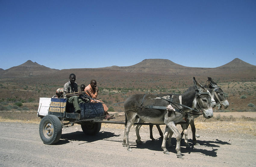 199x. Afrika. Republik Namibia (auch Namibien) / Africa. Republic of Namibia. Paar mit Eselskarren