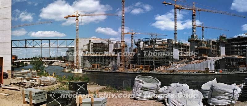 20. Mai 2001. Berlin. Berlin-Mitte. Tiergarten. Regierungsviertel. Bundestagsbaustelle am Schiffbauerdamm. Panorama.