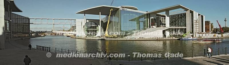 3. 10. 2003. Berlin. Berlin-Mitte. Tiergarten. Regierungsviertel. Fluss Spree. Bundeskanzleramt. Kanzleramtsgebäude.
