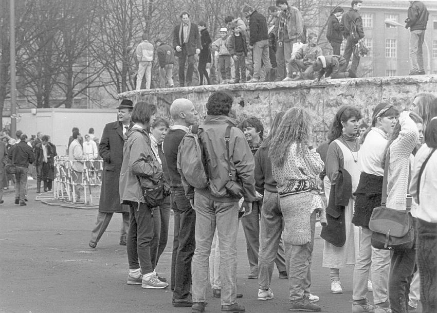 19. 2. 1990. Berlin. Schaulustige beim Brandenburger Tor. DDR Grenze