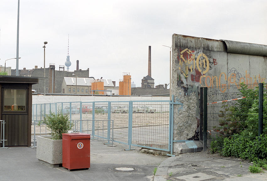 16. 6. 1990. Berlin. Ehemalige DDR-Grenze zwischen Kreuzberg und Mitte am Bethaniendamm. Berliner Mauer. Kontrollstelle an der Köpenicker Straße