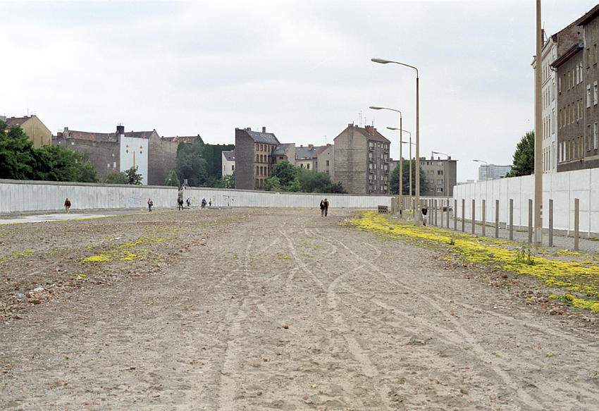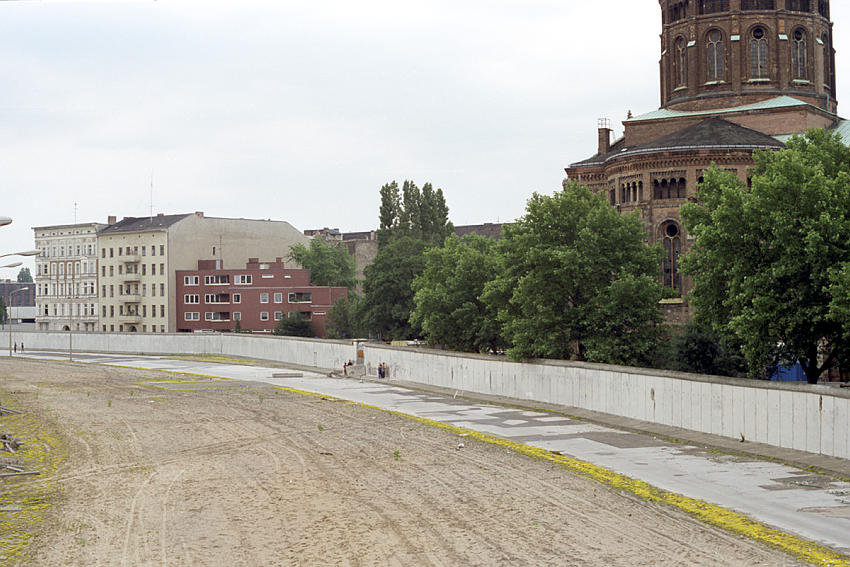 16. 6. 1990. Berlin. Ehemalige DDR-Grenze zwischen Kreuzberg und Mitte am Bethaniendamm. Berliner Mauer