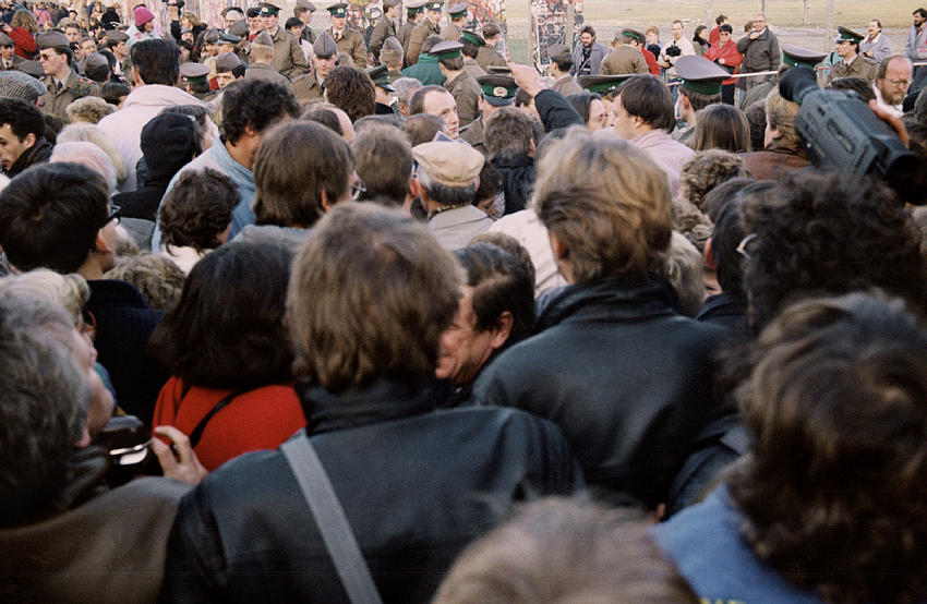 12. 11. 1989. Berlin. Öffnung der Berliner Mauer zwischen Tiergarten und Mitte beim Potsdamer Platz. DDR Grenze. Viele Schaulustige verfolgen die Vorgänge.