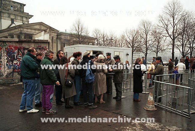 7. Januar 1990.Berlin. Berlin-Mitte/Tiergarten.DDR Grenze. Uebergang an der Berliner Mauer beim Brandenburger Tor