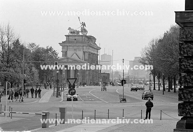 18.01.1990 Berlin-Mitte, Blick vom Pariser Platz auf das Brandenburger Tor.