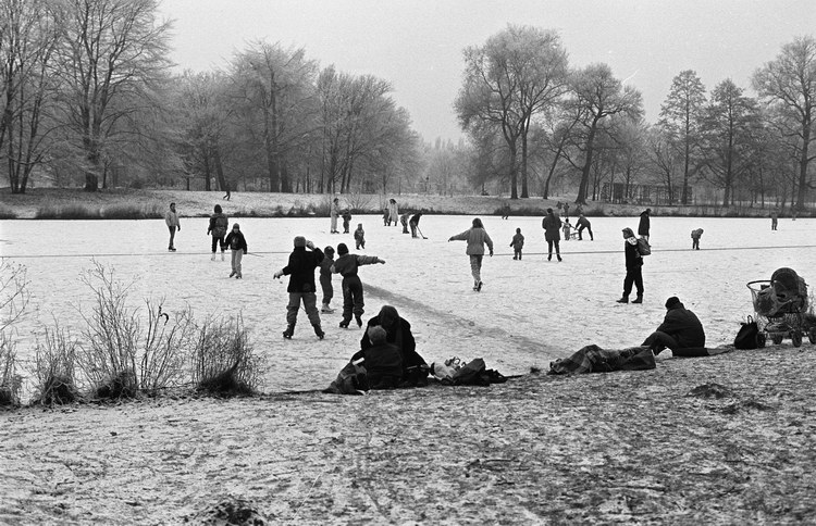 29. Dezember 1992. Berlin. Schlosspark. Schloss Charlottenburg. Winter. Schlittschuhlaufen auf dem Karpfenteich.