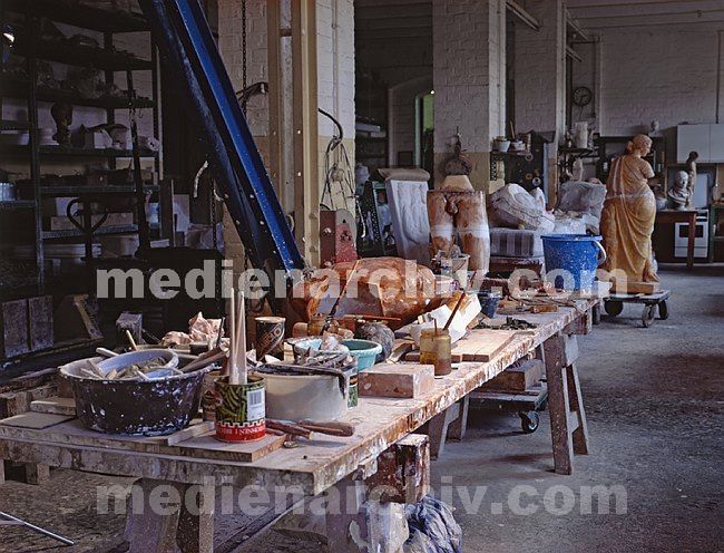 September 1990. Berlin. Charlottenburg. Gipsformerei. Skulptur