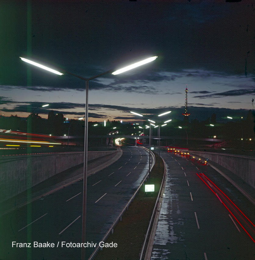 1961. Deutschland. Berlin. Charlottenburg. Stadtautobahn. Nacht. Straßenlaternen. Beleuchtung