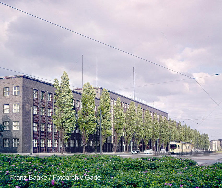1960. Deutschland. Berlin. Charlottenburg. SFB-Gebäude. Sender Freies Berlin. Straßenbahn