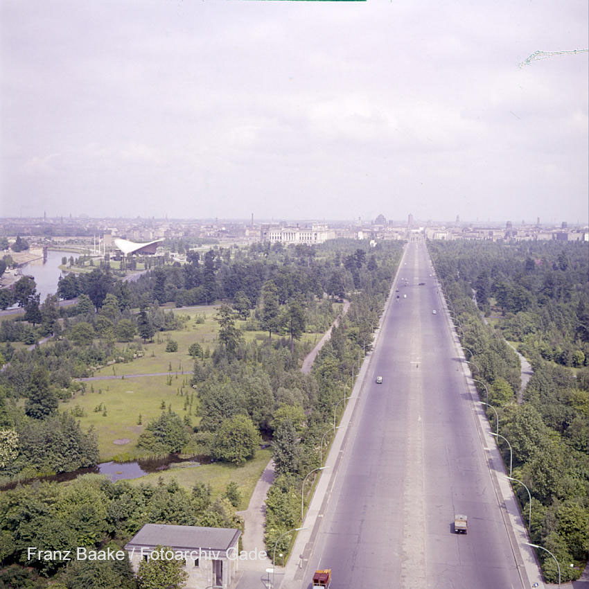 1961. Deutschland. Berlin. Tiergarten. Str. des 17. Juni durch den Park Tiergarten. Blick von der Siegessäule.