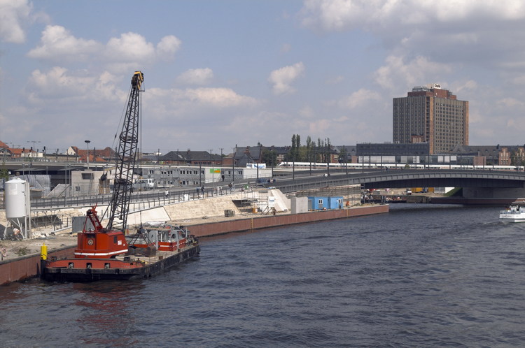 1. 5. 2005. Berlin. Mitte. Moabit. Fluss Spree bei der Baustelle Berliner Hauptbahnhof