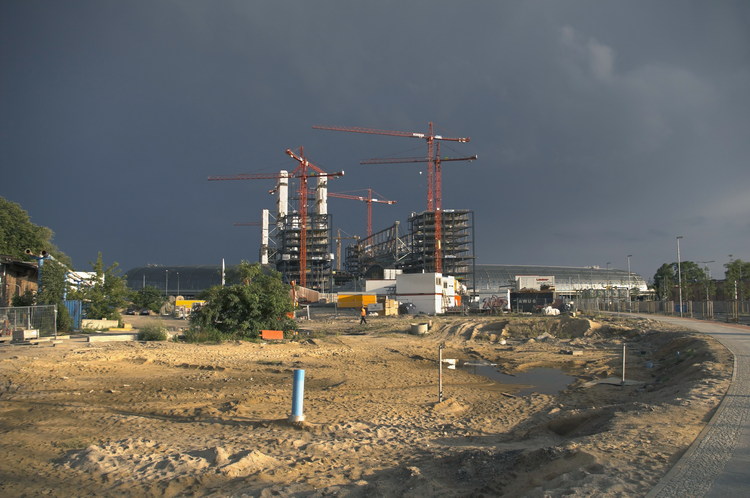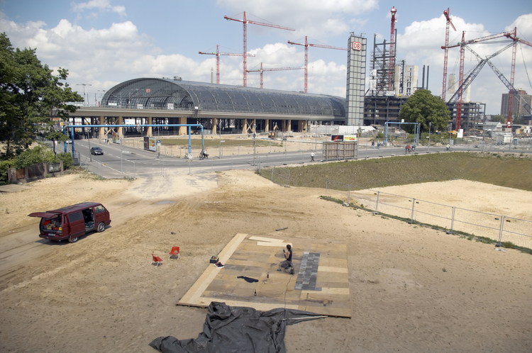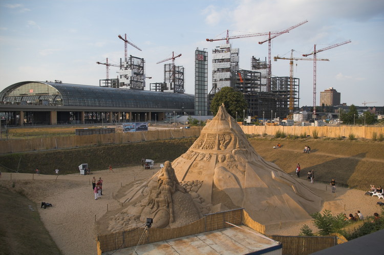 3. 7. 2005. Berlin. Mitte. Moabit. Baustelle Berliner Hauptbahnhof. Sandsation.