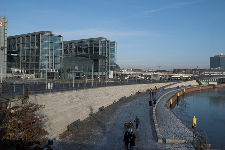 2006. Berlin. Mitte. Moabit. Lehrter Bahnhof. Hauptbahnhof. Fluss Spree.