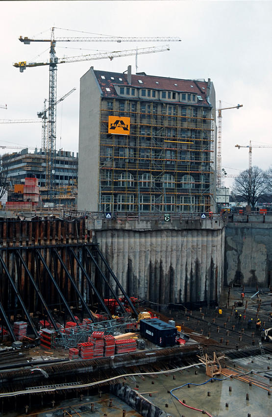 31. 1. 1997. Deutschland. Berlin. Bauarbeiten am Potsdamer Platz. Weinhaus Huth