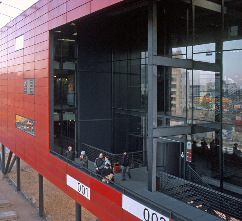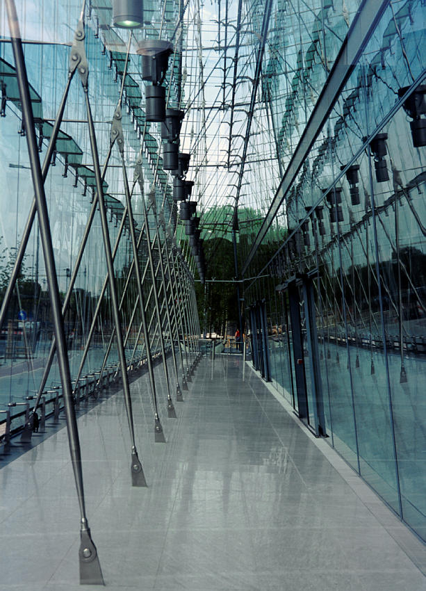 1. Mai 2000. Berlin. Mitte. Tiergarten. Potsdamer Platz. Sony Center. Metallstreben und viel Glas bilden die Mauern.