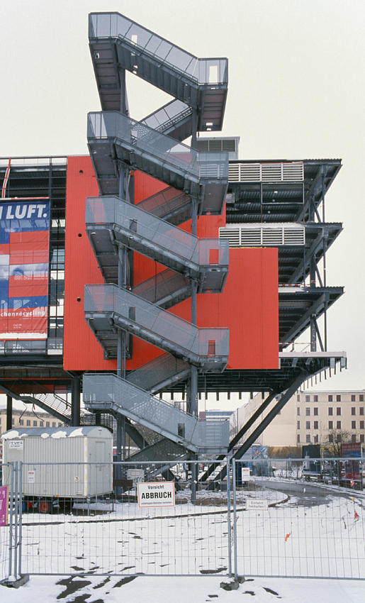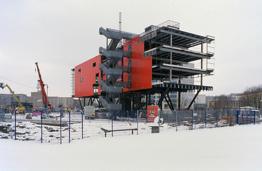 3. 3. 2001. Berlin. Potsdamer Platz. Abriss der Info-Box am Leipziger Platz