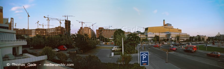 September 1996. Berlin. Mitte. Tiergarten. Baustelle Potsdamer Platz. Weinhaus Huth. Philharmonie