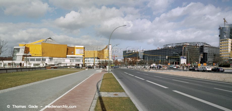 März 1999. Berlin. Mitte. Tiergarten. Baustelle Potsdamer Platz. Philharmonie