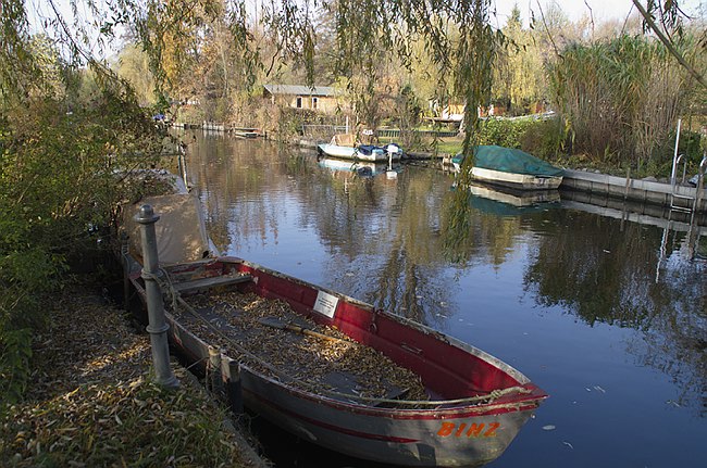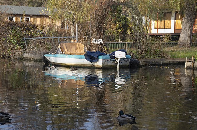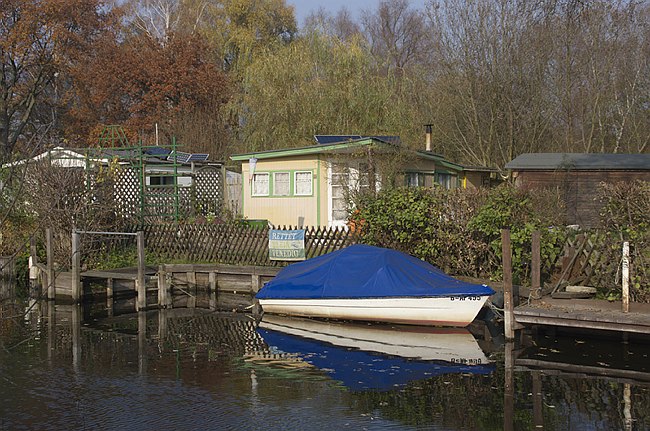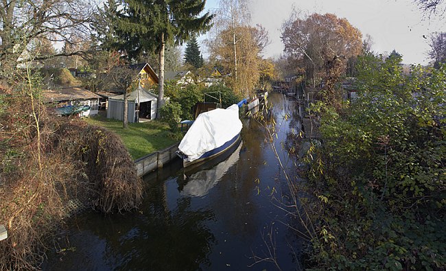 5. 11. 2011. Berlin. Spandau. Tiefenwerder. Klein Venedig. Kanal. Kanäle. Boote. Wochenendgrundstücke. Laube.