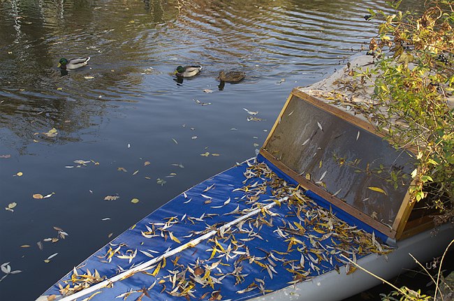 5. 11. 2011. Berlin. Spandau. Tiefenwerder. Klein Venedig. Kanal. Kanäle. Boote. Faltboot Delphin aus der DDR. Herbstlaub
