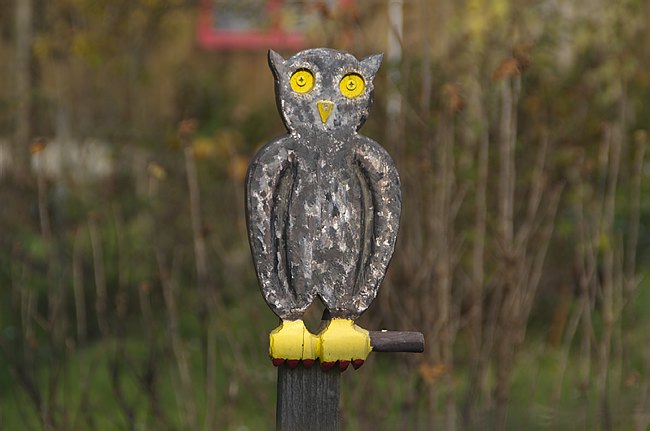 5. 11. 2011. Berlin. Spandau. Tiefenwerder. Klein Venedig. Holztafel Käuzchen. Vogel