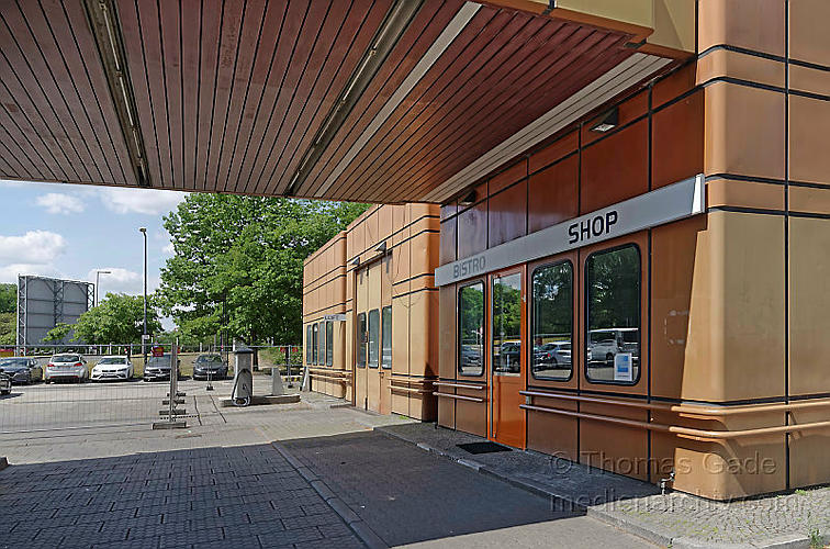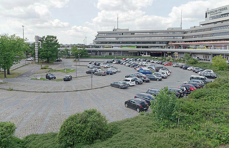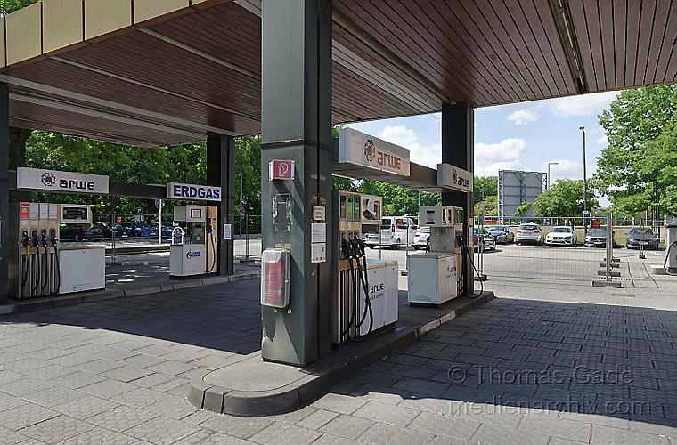 27. 5. 2020. Berlin. Tankstelle am Flughafen Tegel. Airport TXL. Wegen der Beschränkungen durch den Corona Virus / Covid-19 ist fast kein Betrieb mehr am Flugplatz. Daher sind kaum noch Taxen und Passagier zu sehen. Die Tankstelle und das Hauptgebäude sind. Viele Mitarbeiter wurden entlassen