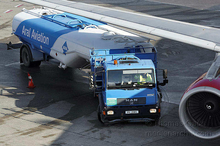 17. 2. 2016. Berlin. Reinickendorf. Flugplatz Tegel. Aral Tanklaster bei einem Flugzeug