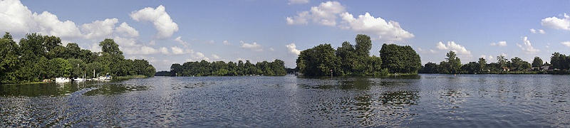 5. 8. 2013. Berlin. Tegel. Tegeler See. Havel. von links nach rechs: Insel Valentinswerder. Insel Maienwerder. Hallig. Einfahrt in den Berlin-Spandauer-Schifffahrtskanal