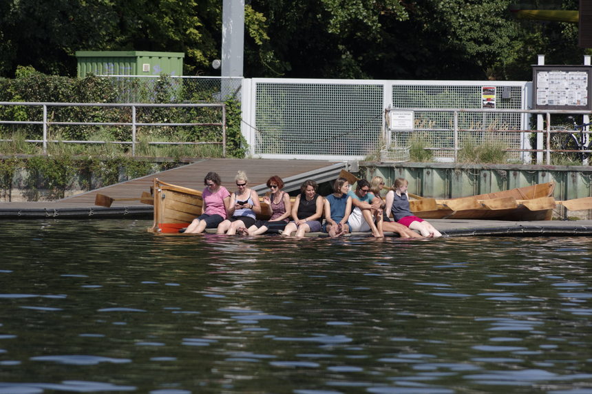 16. 8. 2018. Berlin. Reinickendorf. Tegel. Tegeler See. Damen auf einem Ponton. Ruder-Club Tegel