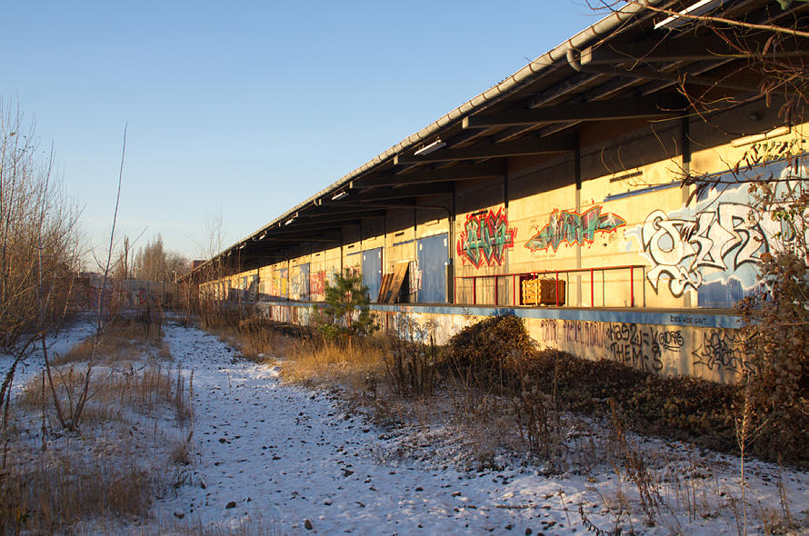 7. 12. 2012. Berlin. Mitte. Moabit. Heidestraße. Ruinen von alten Verlade-Schuppen
