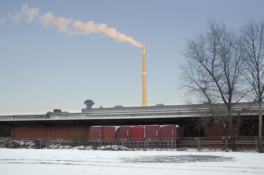 7. 12. 2012. Berlin. Mitte. Moabit. Heidestraße. Heizkraftwerk Mitte. Rauchender Schornstein