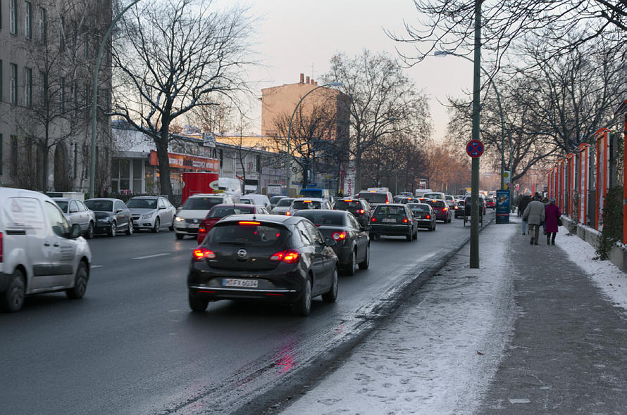 Dichter Verkehr. Schwer vorstellbar, dass diese Straße nach dem Bau eines Quartiers für mehrere Tausend neue Bewohner und einige Zigtausend Arbeitsplätze dem zusätzlichen Verkehrsaufkommen gewachsen sein soll.