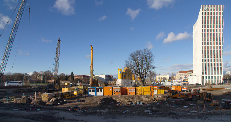 30. 12. 2012. Berlin. Mitte. Moabit. Europacity. Heidestraße. Baustelle beim Hauptbahnhof. Total Büro-Hochhaus